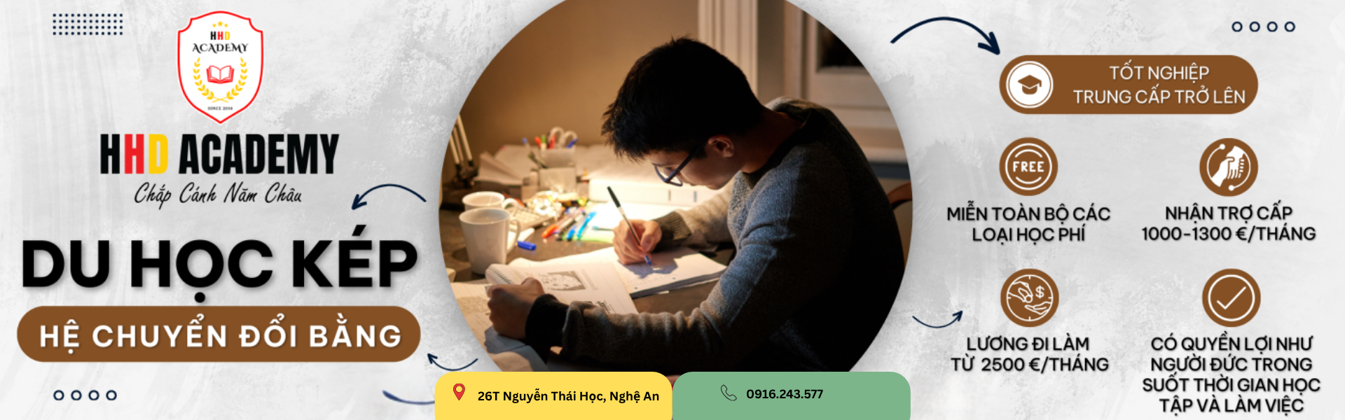 Công ty Cổ phần HHD Academy Nghệ An hoạt động trong lĩnh vực tư vấn du học, với đội ngũ quản lý và tư vấn viên được đào tạo bài bản, có kinh nghiệm và hiểu biết sâu về hệ thống giáo dục của nhiều quốc gia có nền giáo dục phát triển như Đức, Nhật Bản, Hàn Quốc...